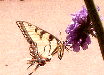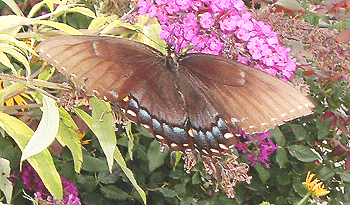 This is actually a female Tiger Swallowtail mimicking the poisonous Pipevine Swallowtail |